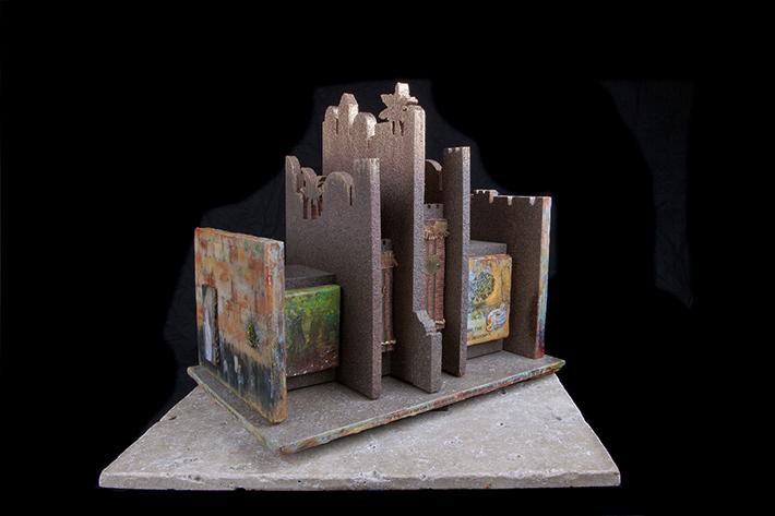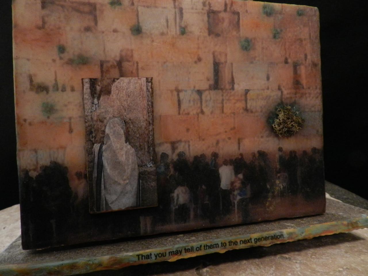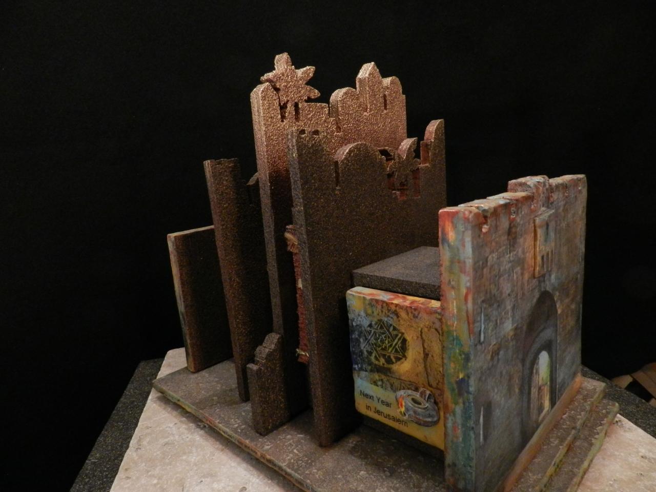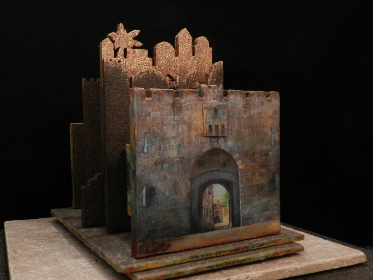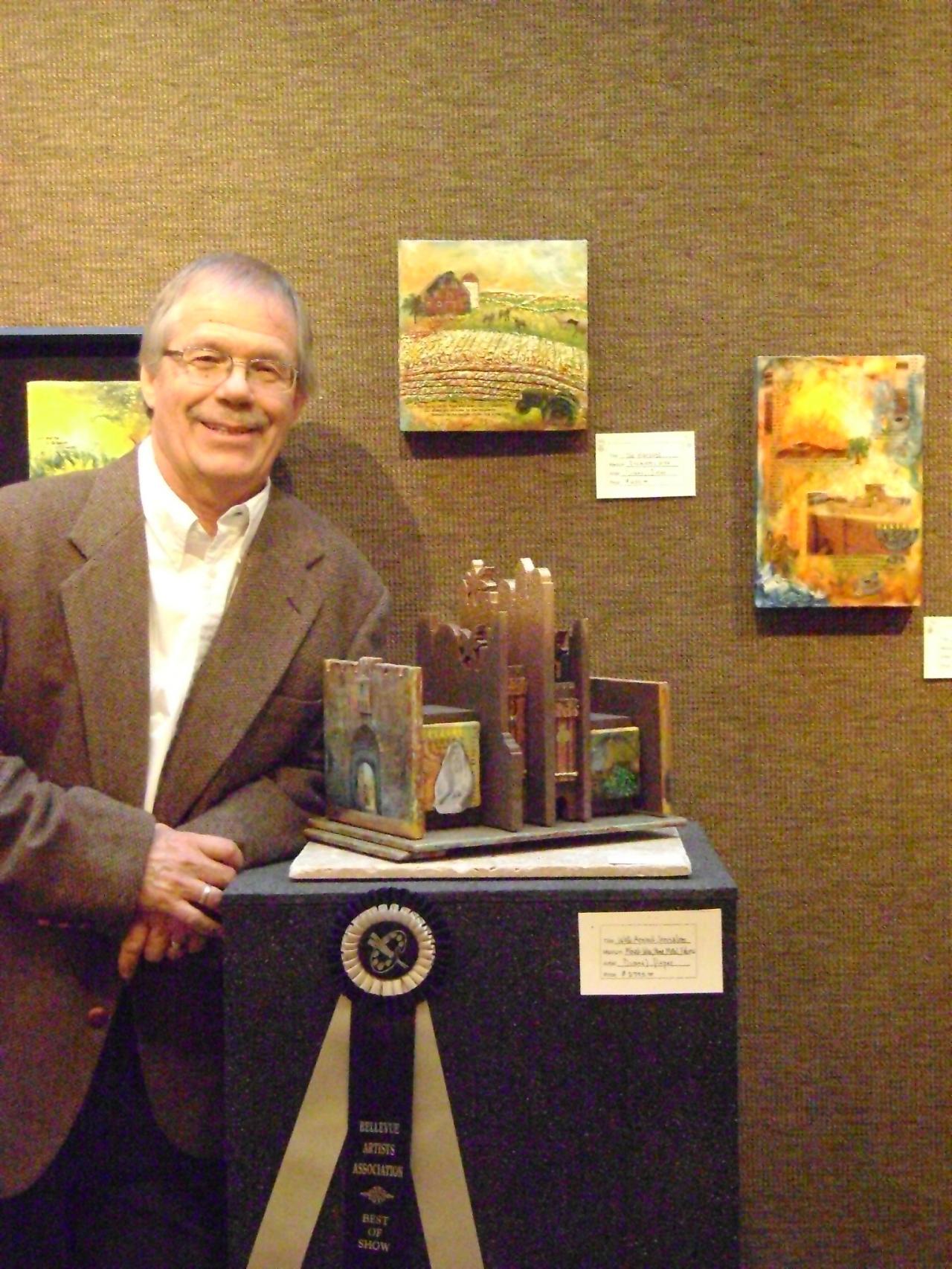 The 'Walk Around Jerusalem' three-dimensional revolving sculpture was created with a variety of mediums, including encaustic wax. It was awarded 'Best of Show' at the 2011 Bellevue Artist 'Silver Palette' show. It also received a 'special recognition' award at the 14th Annual Judeo-Christian International Online Exhibit sponsored by the Upstream People Gallery. My wife, Kathie, and I had the privilege of living, working, and studying in the ancient city of Jerusalem and this piece was inspired by that experience.
